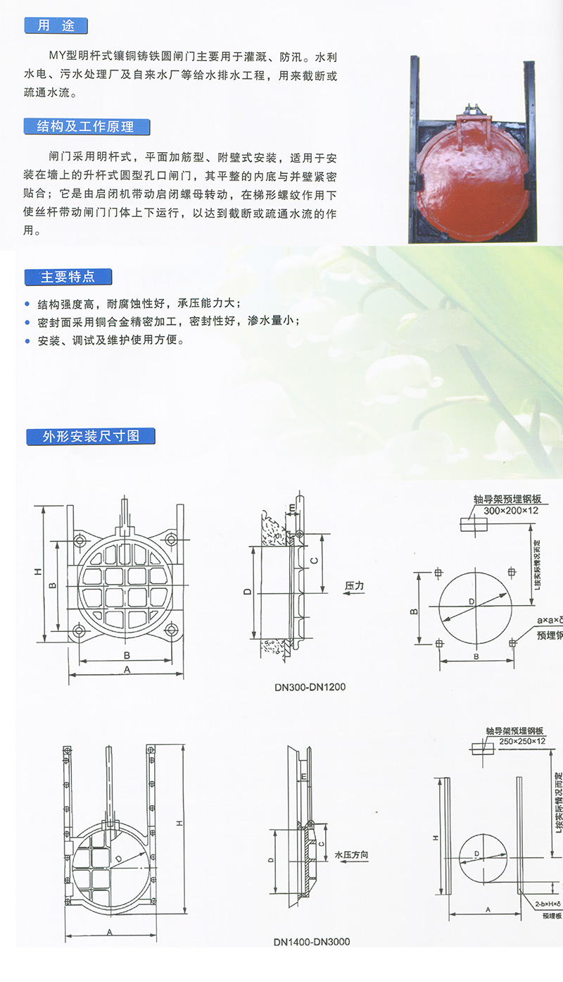 MY型明杆式镶铜铸铁圆闸门